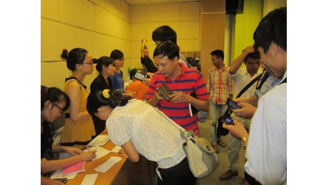 Các học viên chen chúc đăng kí khóa học giá hơn 3 triệu đồng. Một khóa học làm giàu đang gây sốt. Ảnh: Hướng Dương
