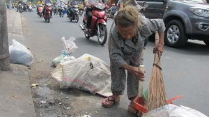 Bà cụ lưng đã còng gập xuống tới tận đầu gối, tinh thần lúc tỉnh lúc “không bình thường”. Nhưng ngày nào cũng vậy, bà vẫn kéo chổi dọc đường ở Ba Tháng Hai, từ Q.11 sang Q.10 (TP.HCM) để làm sạch phố phường. Bà tên Đặng Thị Mai, năm nay đã 72 tuổi.