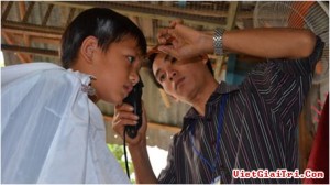 Đang nói chuyện với chúng tôi thì chuông điện thoại reo, thầy Phú bảo: “Dạ 4 giờ, cứ đến trước trường đi ạ”. Chúng tôi thắc mắc: “Cuối giờ, hẹn mọi người lai rai à?”. Thầy Phú cười: “Phụ huynh học sinh gọi điện hẹn hớt tóc cho con đó mà”. Thầy Phú tâm sự thấy học trò đi học mà tóc dài rất không gọn gàng, vì đa số các em là học sinh nghèo, cha mẹ lo làm đầu tắt mặt tối, chẳng có thời gian chăm sóc con. Vậy là thầy quyết định xin trường được hớt tóc cho các em.
