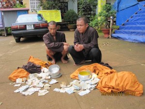 Cũng quần chùng, áo dài, cũng đãy khoác vai, bình bát, cũng y phục quấn quanh người… như bất cứ vị Tu sĩ Tăng – Ni của đạo Phật chỉ có điều động cơ của hầu hết các đối tượng đều phi pháp, lợi dụng lòng tin của người mến mộ đạo Phật nhằm dễ dàng “quyên góp” được tài sản vật chất, tiền, vàng, bạc…
