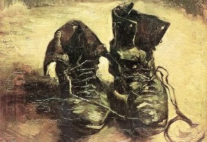Trên đường đi, hai người bắt gặp một đôi giày cũ nằm giữa đường. Họ cho rằng đó là đôi giày của một nông dân nghèo làm việc ở một cánh đồng gần bên, có lẽ ông ta đang chuẩn bị kết thúc ngày làm việc của mình.